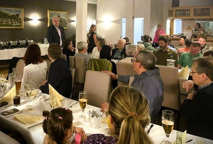 Das Lokal war gut, das Essen hat geschmeckt und mit Musikuntermalung durch Eric ließ sich der Abend gut verbringen. Die Letzten verließen das Lokal nach Mitternacht. Und da die Zeit nicht stehen bleibt und das Vereinsleben auch nicht, fanden sich die Flugschüler und Theorielehrer am nächsten Morgen schon wieder zum theoretischen Unterricht in unserem Schulungsraum auf dem Flugplatz ein…