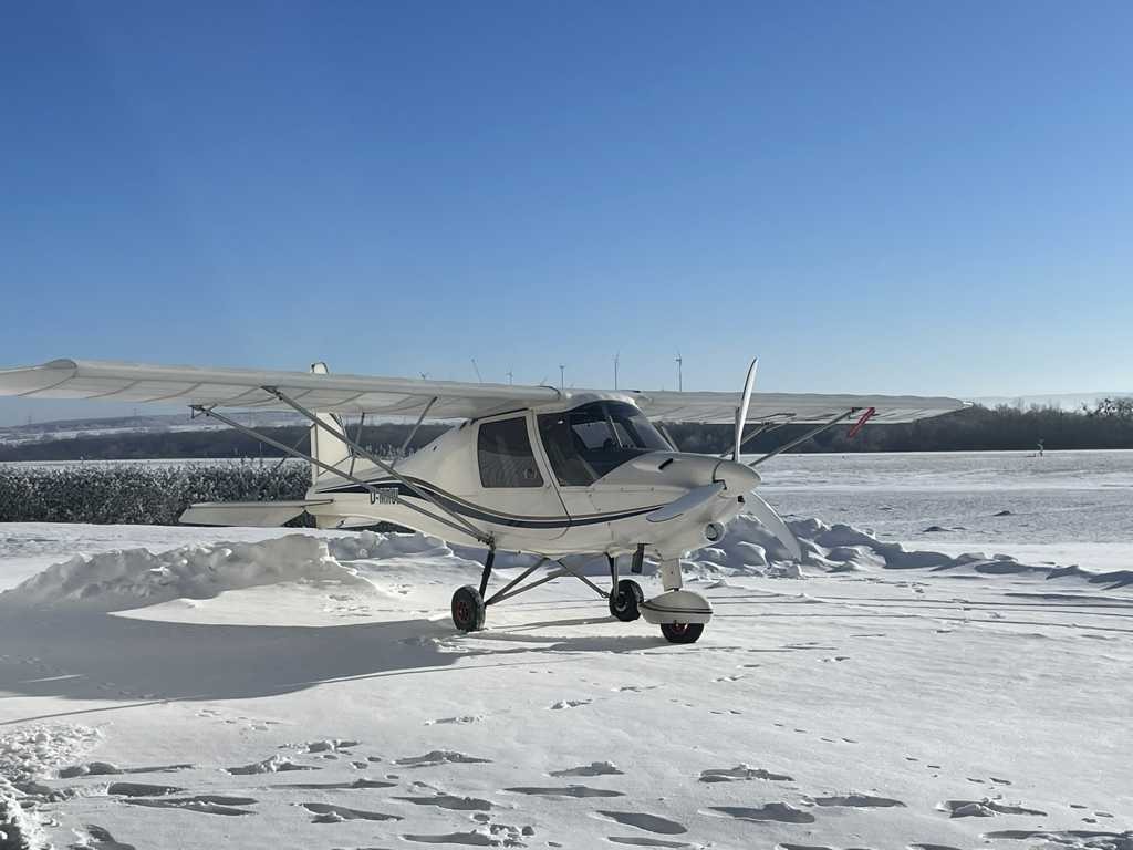 Eine Ikarus C42C, dieses UL ist mit einem Rotax 912 ULS Motor ausgestattet, der mit 100 PS eine Reisegeschwindigkeit von 180 km/h ermöglicht.