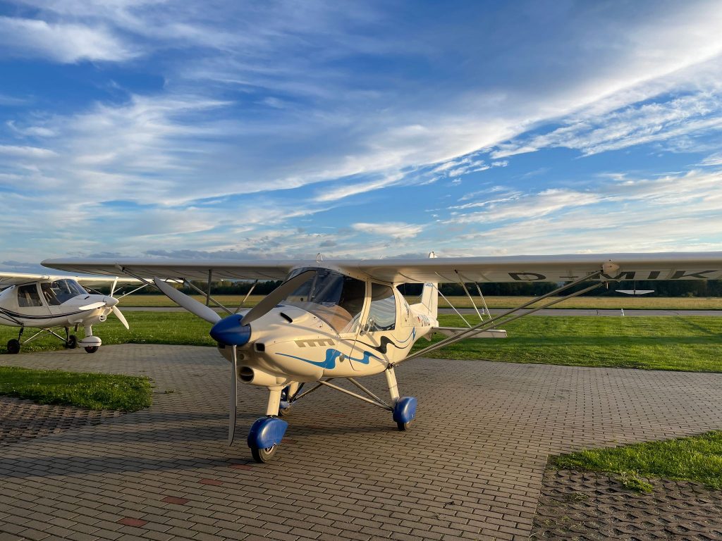 Eine Ikarus C42C, dieses UL ist mit einem Rotax 912 ULS Motor ausgestattet, der mit 100 PS eine Reisegeschwindigkeit von 180 km/h ermöglicht.