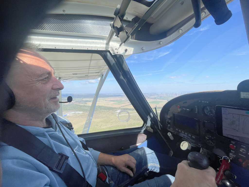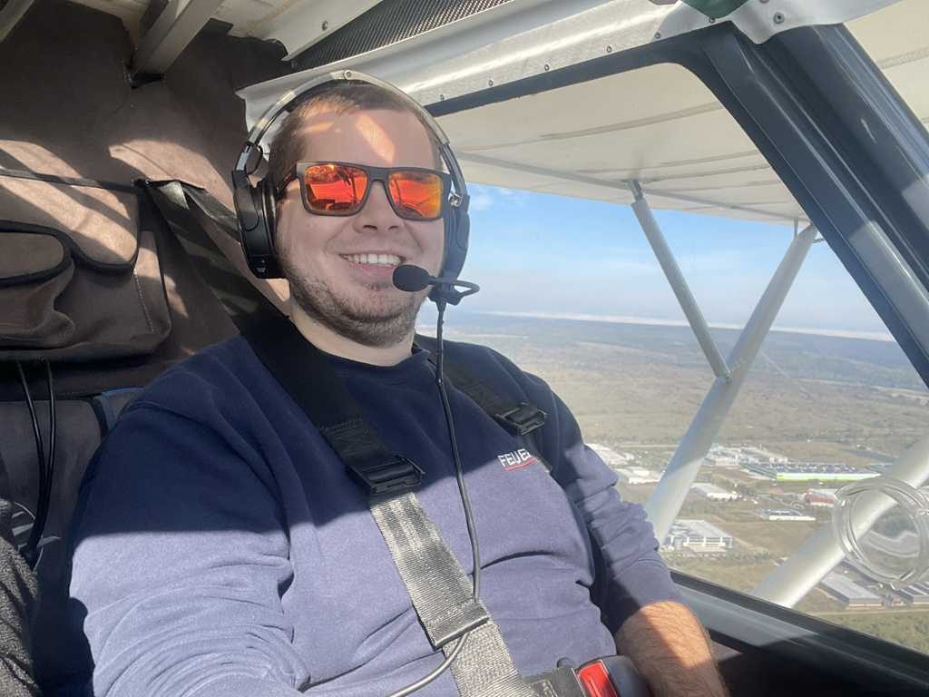 Am 3. Oktober hatten wieder drei Teilnehmer die Gelegenheit, das Gefühl eines echten Piloten hautnah zu erleben. Der Tag begann mit einer Einführung in die Theorie, begleitet von einer Tasse Kaffee, und einer ausführlichen Einweisung ins Flugzeug. Danach folgten praktische Rollübungen auf dem Vorfeld, um den sicheren Umgang mit dem Flugzeug am Boden zu trainieren.