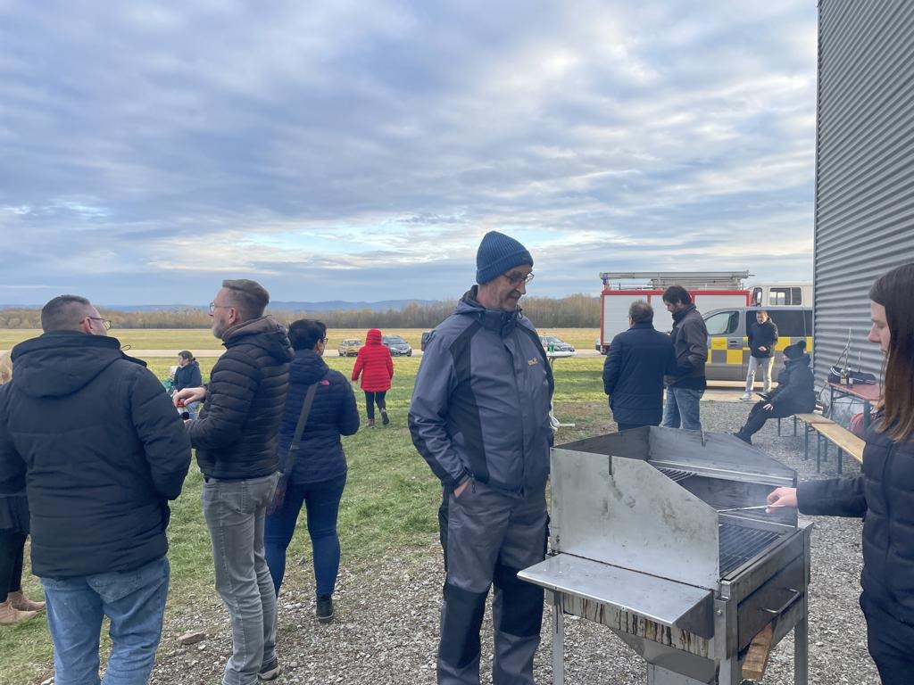 Schon am frühen Abend versammelten sich Vereinsmitglieder, Familien und Besucher rund um die Feuerstelle. Während die letzten Vorbereitungen liefen, bot sich ein schöner Blick über das Flugplatzgelände.